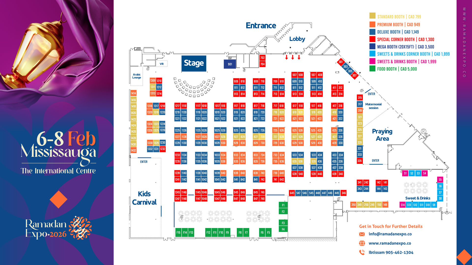 Nous sommes ravis d’annoncer notre deuxième visite à Montréal, en apportant avec nous l’esprit dynamique du Ramadan. Cette grande fête culturelle célèbre la communauté, la culture et le commerce, et nous vous invitons à participer à cet événement historique en tant qu’exposant.